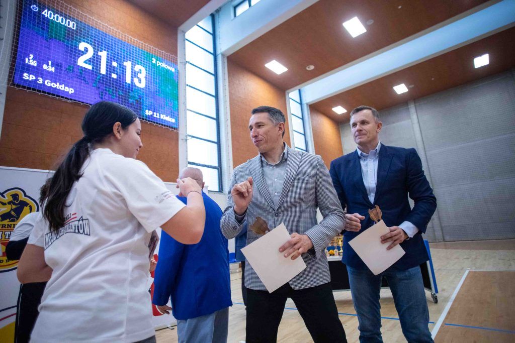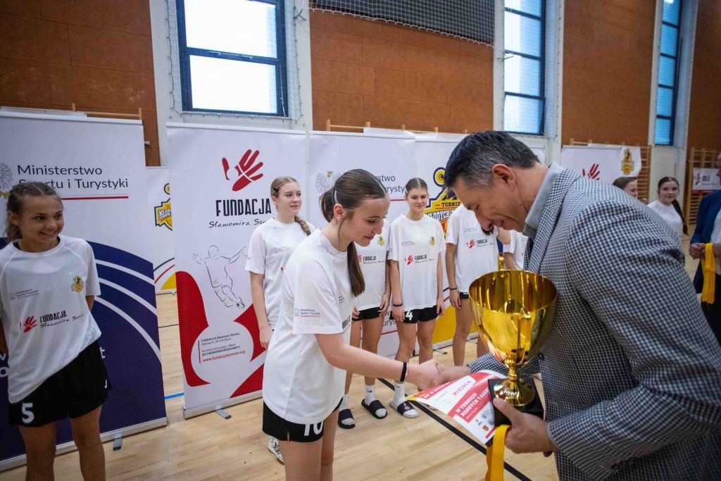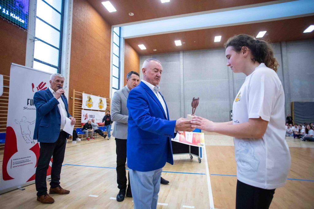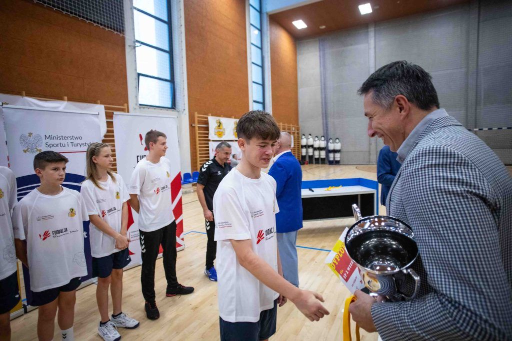 W finałowym dniu sportowych zmagań młodych adeptów piłki ręcznej pamiątkowe medale, statuetki dla najlepszych zawodników oraz puchary za zdobycie miejsc na podium wręczał Sławomir Szmal, którego fundacja była głównym organizatorem “Turnieju Młodych Talentów”. – Dziękuję wam wszystkim za przybycie i stworzenie świetnej atmosfery. Pokazaliście się ze świetnej strony i każdemu zawodnikowi gratuluje występu – powiedział do uczestników Sławomir Szmal.